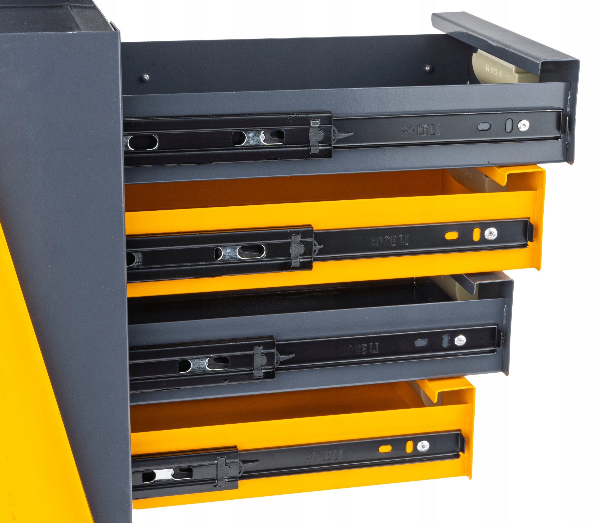 Візок оснащено чотирма висувними ящиками, які дозволяють ефективно керувати робочим простором. Завдяки цьому рішенню зварювальник має швидкий і легкий доступ до всіх необхідних інструментів і аксесуарів, що призводить до підвищення ефективності роботи.