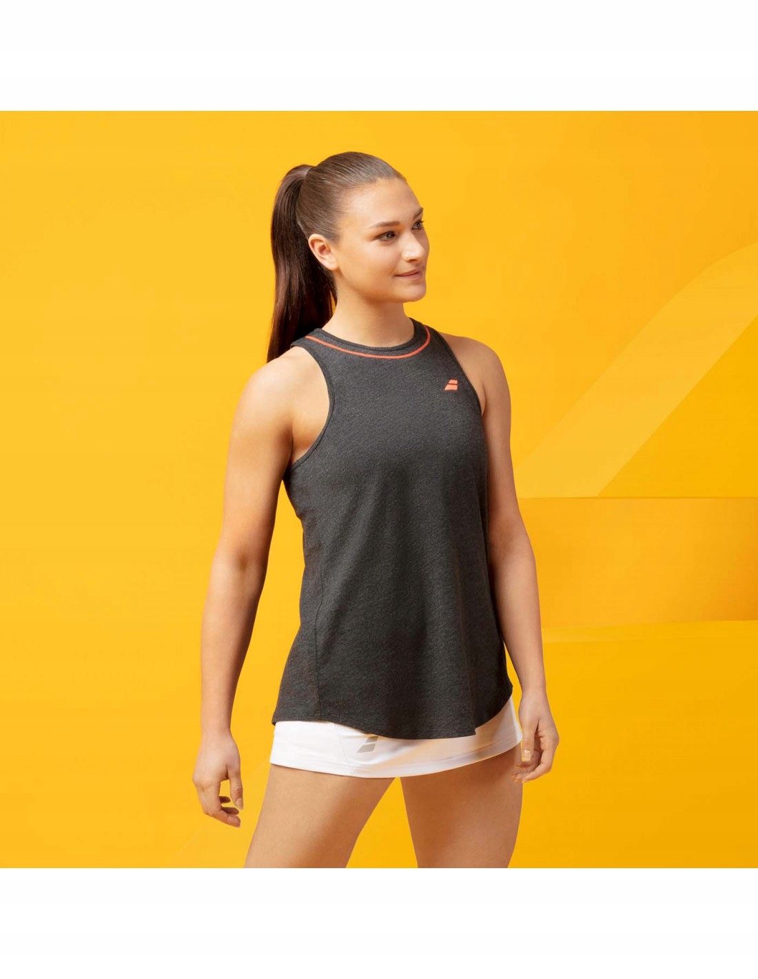 верх від знакових вправ від виробника Babolat. Він ідеально підходить для гри в теніс, але також для носіння щодня. Надзвичайно приємний на дотик матеріалу, з якого він був зроблений. У верхній частині також є дискретний логотип Babolat.