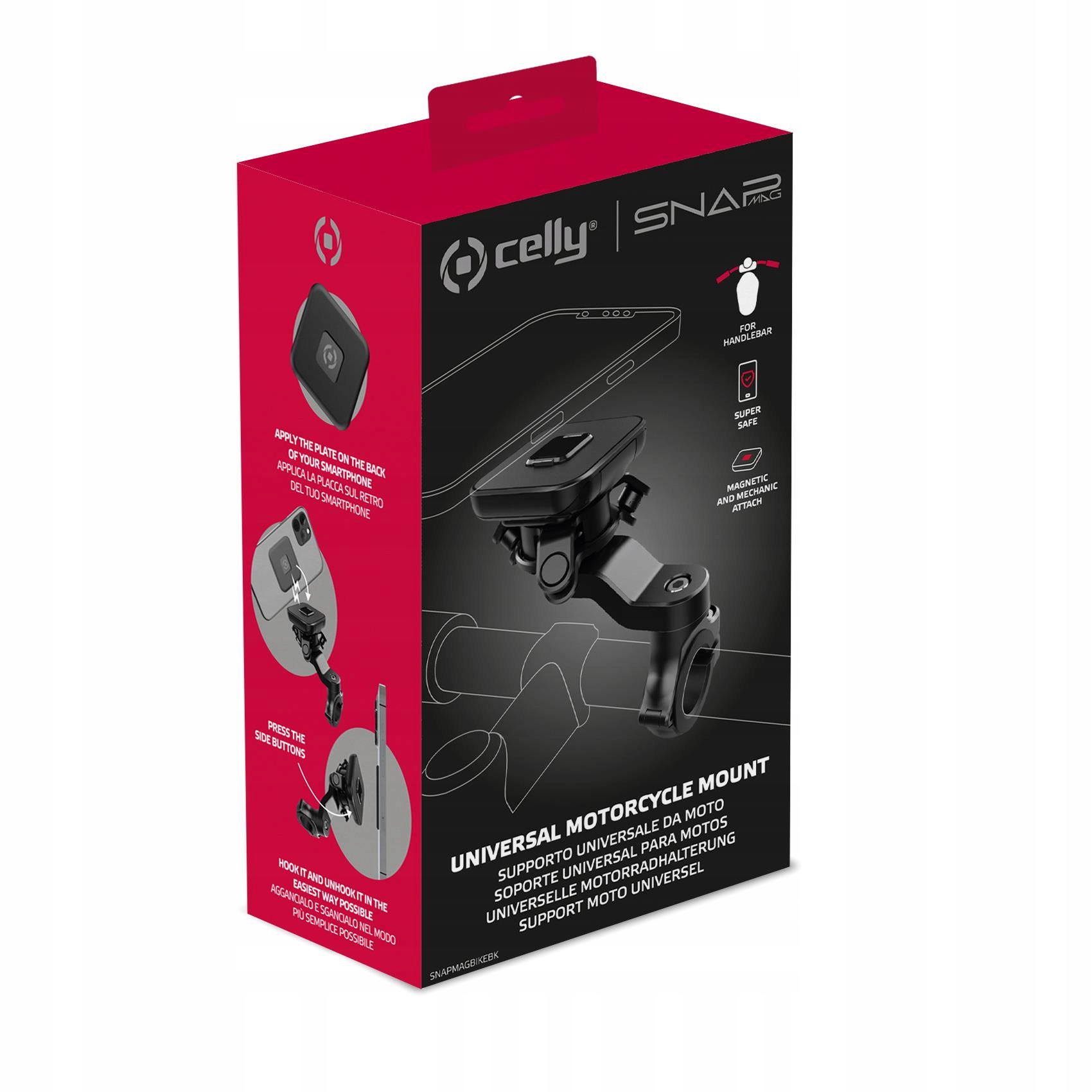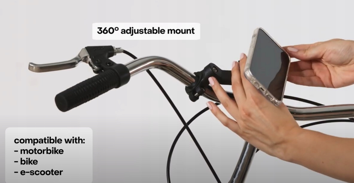 Snapmagbike призначений для кріплення на кермі і сумісний з усіма стандартними розмірами рульового колеса, всередині упаковки є 3 стандартні силіконові адаптери .