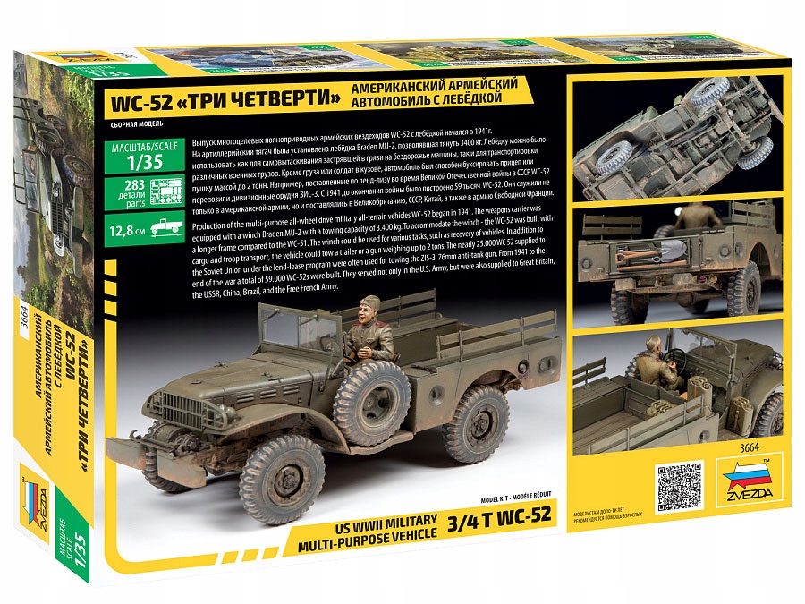 Звезда 3664 1/35 3/4T WC-52 Військовий багатоцільовий автомобіль Другої світової війни США