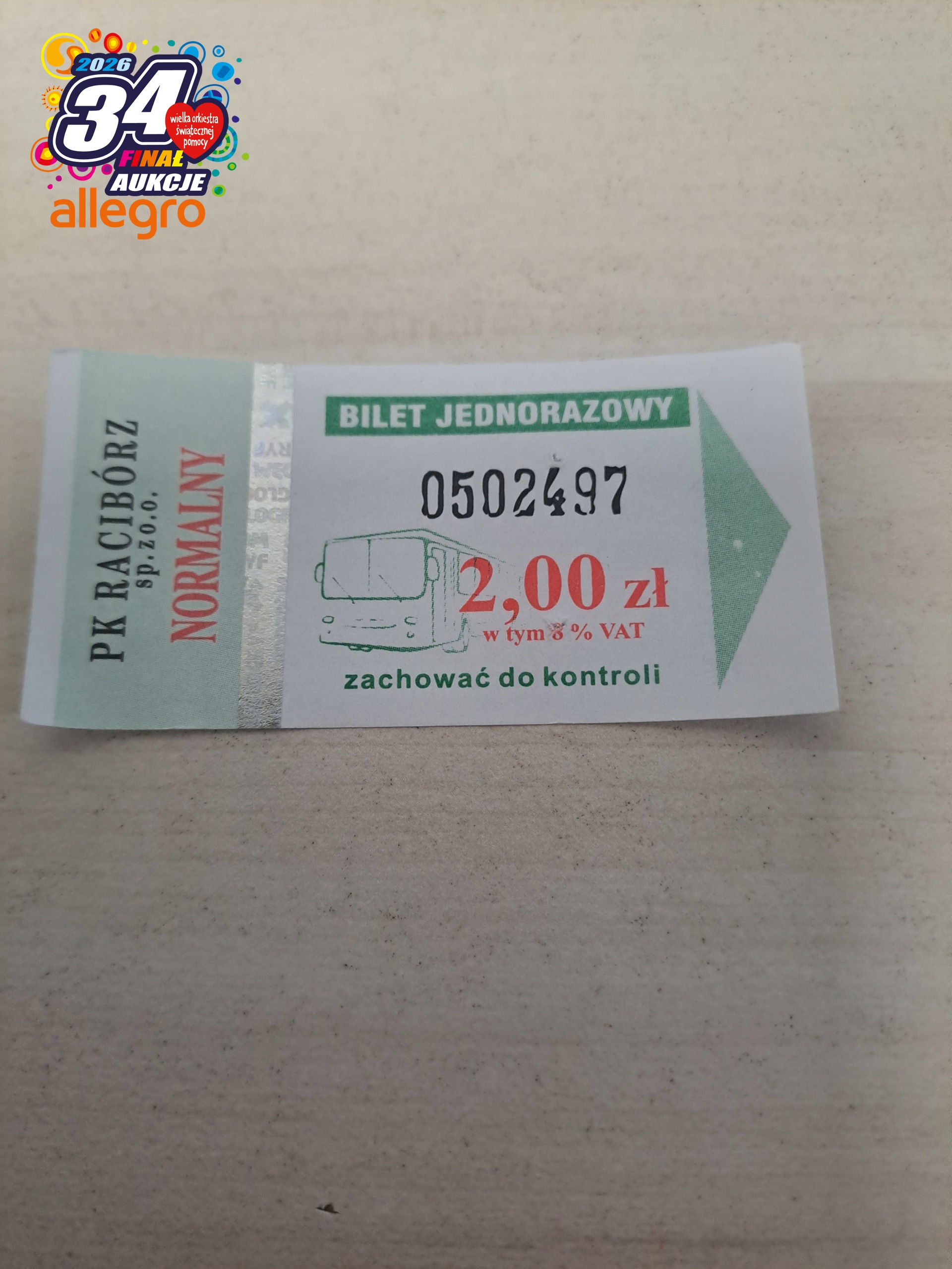 Звичайний квиток PK Racibórz 2 PLN, пакет 100, валідований.