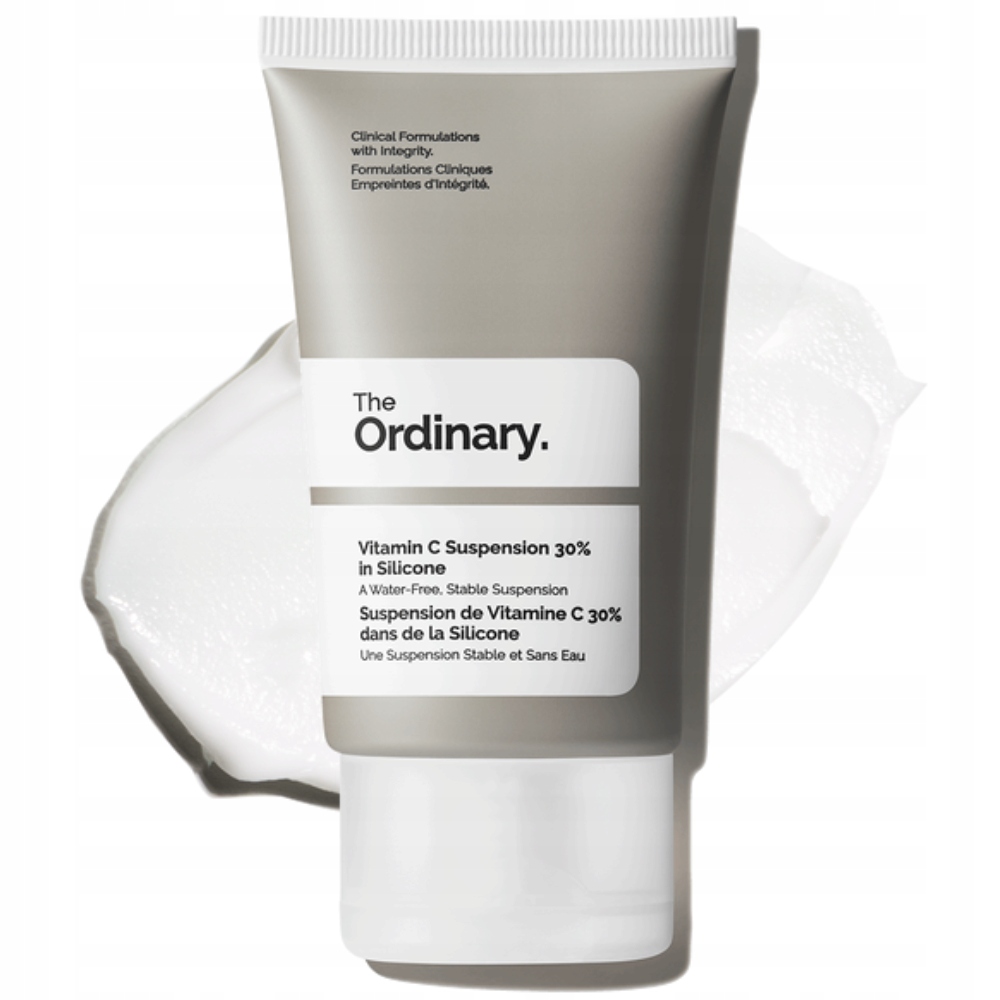 Суспензія вітаміну С 30% у силіконовій формі — це гладка кремова формула, яка завдяки прямому вмісту вітаміну С допомагає помітно зменшити ознаки старіння, освітлюючи та вирівнюючи тон шкіри. Ця безводна формула містить 30% прямої L-аскорбінової кислоти, яка залишається повністю стабільною через відсутність води. Крім того, ця безводна формула містить надлегкі силікони, які зменшують відчуття поколювання, яке може супроводжувати місцеве лікування вітаміном С.