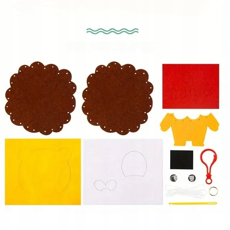 - вміст упаковки: швейні елементи, пластикова голка (6 шт.), пластик ножиці, кольорові нитки (6 шт.), пластикові та/або фетрові елементи для наклеювання, пластикові підвіски, штучне наповнення, клей (штучне наповнення можна замінити ватою)