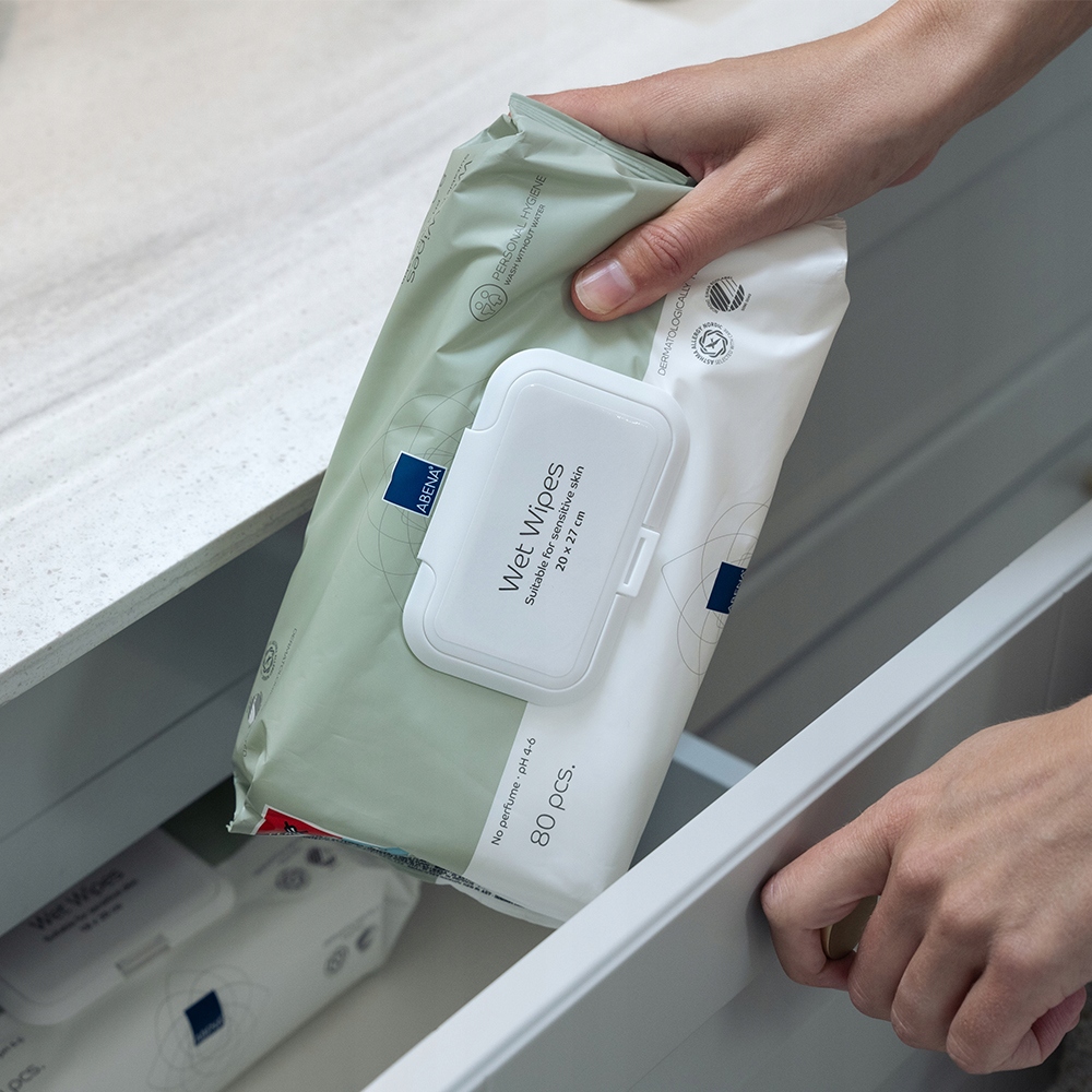 Зволожені серветки 4x80 PCS Великий 20х27 для дорослих анти -алергічних Abena