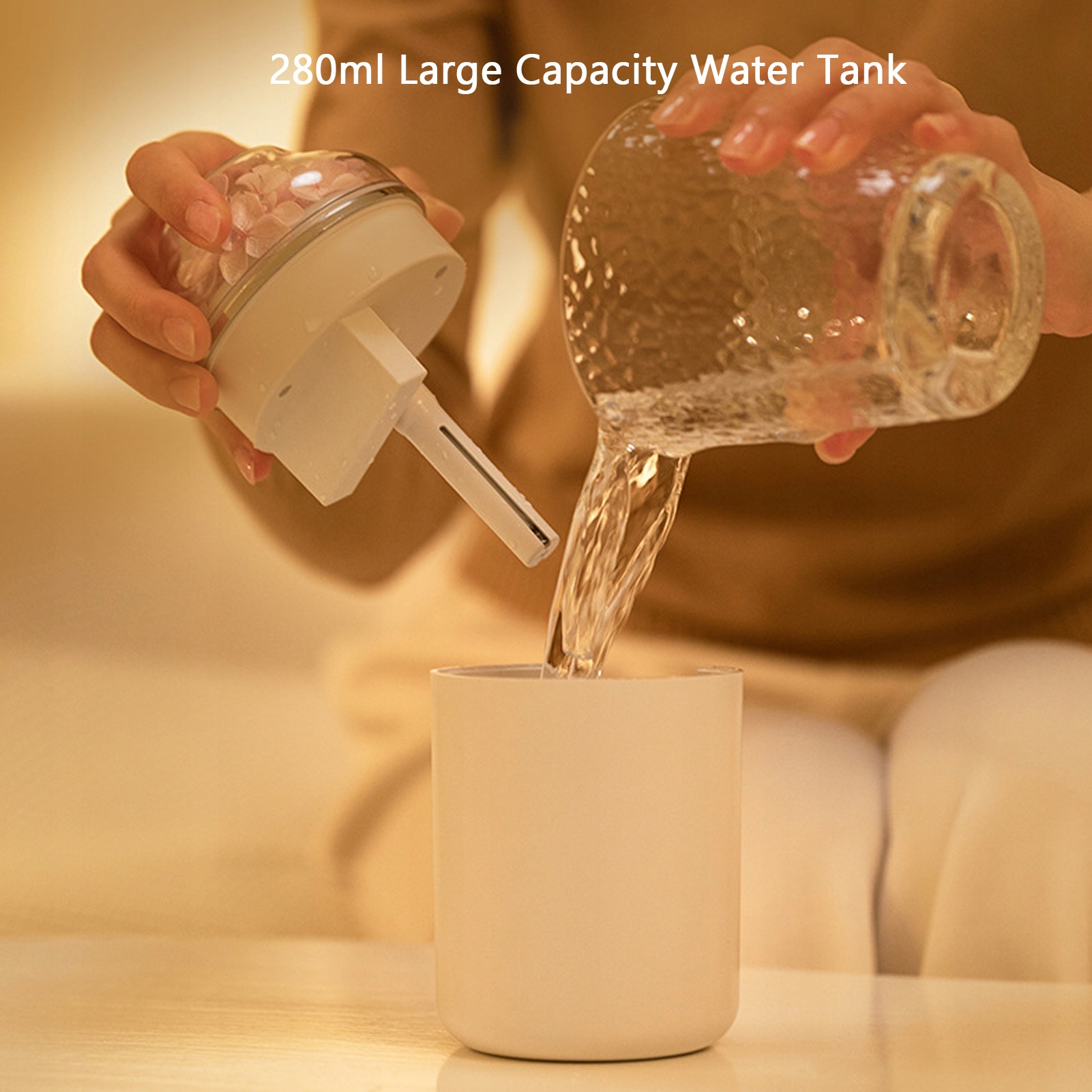 5. Резервуар для води великої місткості 280 мл: наповніть продукт необхідною кількістю води та вийміть ватний диск. Будьте обережні, щоб не видалити пружину в нижній частині ватного диска, повністю намочіть ватний диск, потім вставте його в пристрій і накрийте. Усередині резервуара для води великого діаметру є лінія рівня води, просто додайте відповідну кількість. Резервуар для води великого діаметру зручно мити та забезпечує чистоту води.