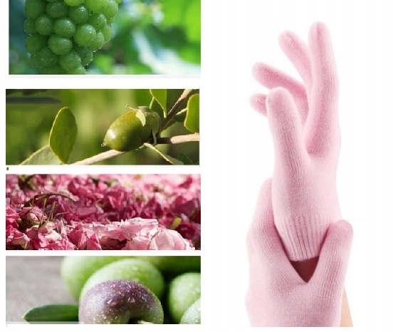 Зволожуючі рукавички виготовлена з бавовняної махри, підкладена гіпоалергенним гелем, збагаченим вітаміном Е та натуральними рослинними оліями: лаванди, жожоба, оливи. Вони сприяють регенерації епідермісу, інтенсивно живлять руки, роблять їх м'якими і ніжними.