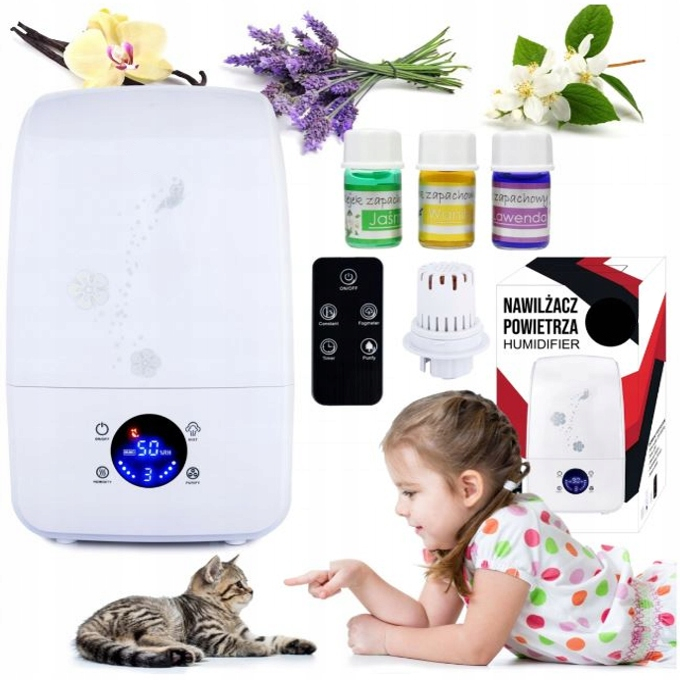 Автоматичний зволожувач повітря з дисплеєм, гігрометром, таймером і багатьма іншими функціями є дуже корисним пристроєм для вашого будинку. Він допомагає підтримувати постійну вологість повітря в приміщенні, але його також можна використовувати для ароматерапії або інгаляцій, оскільки він має спеціальний контейнер для ароматичних олій, а його конструкція стійка до речовин, що містяться в оліях. .