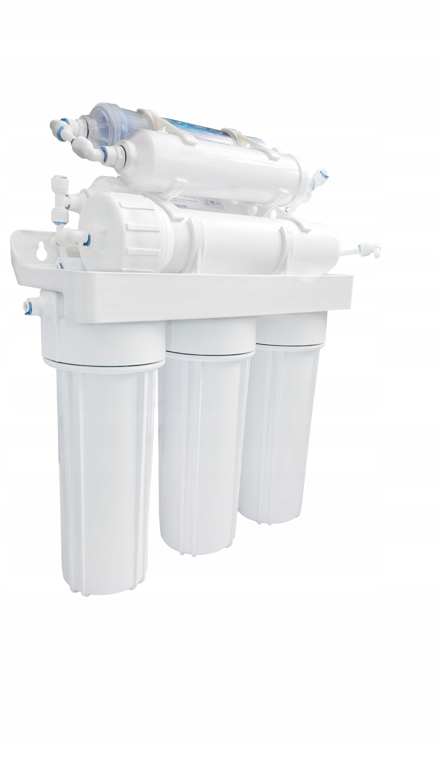 Система зворотного осмосу має три вставки для початкової фільтрації води - осадження , що очищає воду іржі, піску та суспензій та вуглець , що очищає воду хлору, органічні речовини та деякі пестициди. Завдяки використанню осмотичної мембрани можна видалити до 99% забруднення, що перевищує 0,001 мкм та деякі віруси та бактерії.