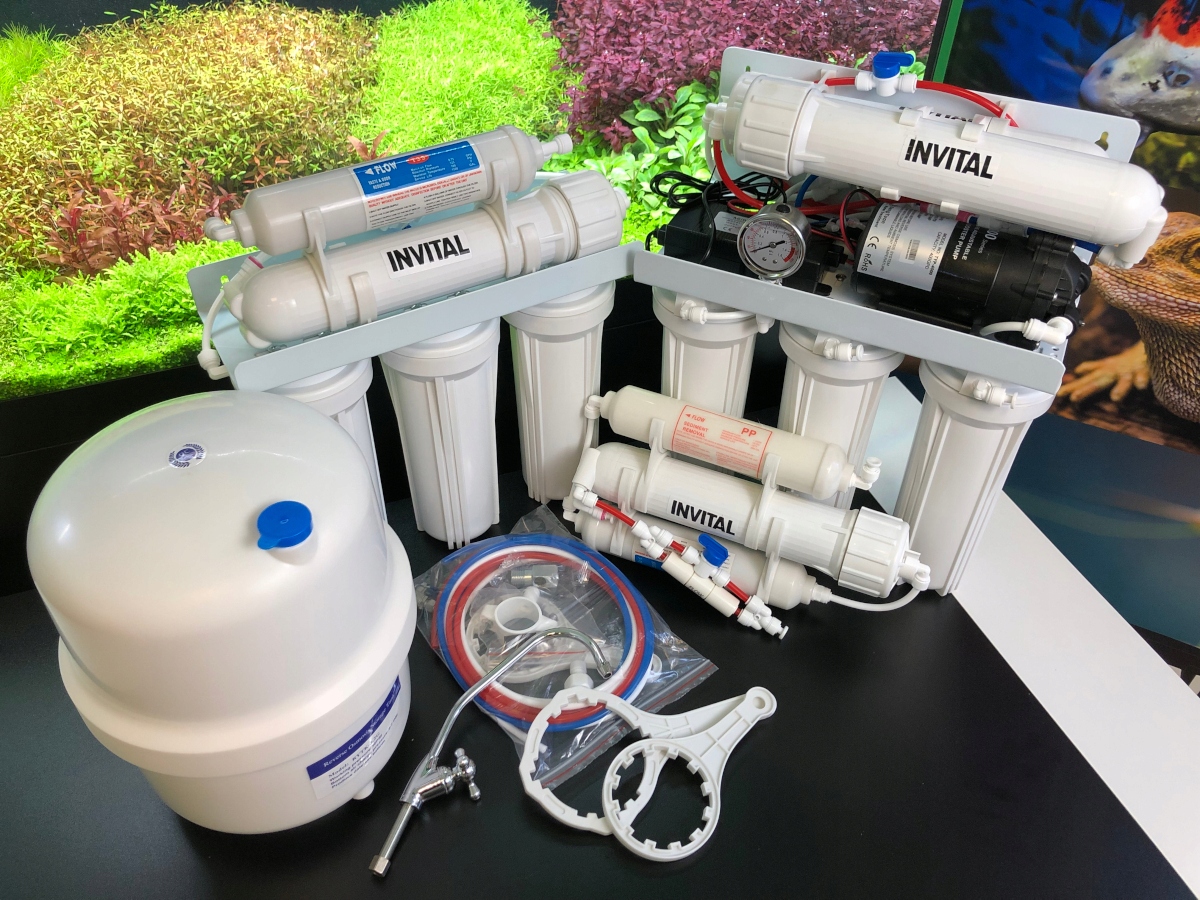 Кожна система осмосу працює таким чином, що вода надходить у неї безпосередньо з крана та фільтрується, а на інша сторона системи осмосу. Абсолютно чиста вода витікає через один вихід, а стічні води – через інший. Для змішування води в акваріумі ми будемо використовувати чисту воду, а тверді нечистоти вилиємо або використаємо для інших цілей. Цей осмос є базовою моделлю, яка повністю підходить для базового використання в морських акваріумах, лабораторіях і виробництві дистильованої води для будь-якого застосування. Для виробництва більших обсягів води ми рекомендуємо систему осмосу Invital RO ADVANCED LAB, яка має поплавковий набір і додатковий нагнітальний насос, який покращує співвідношення чистої води та стічних вод і прискорює виробництво води. p>
