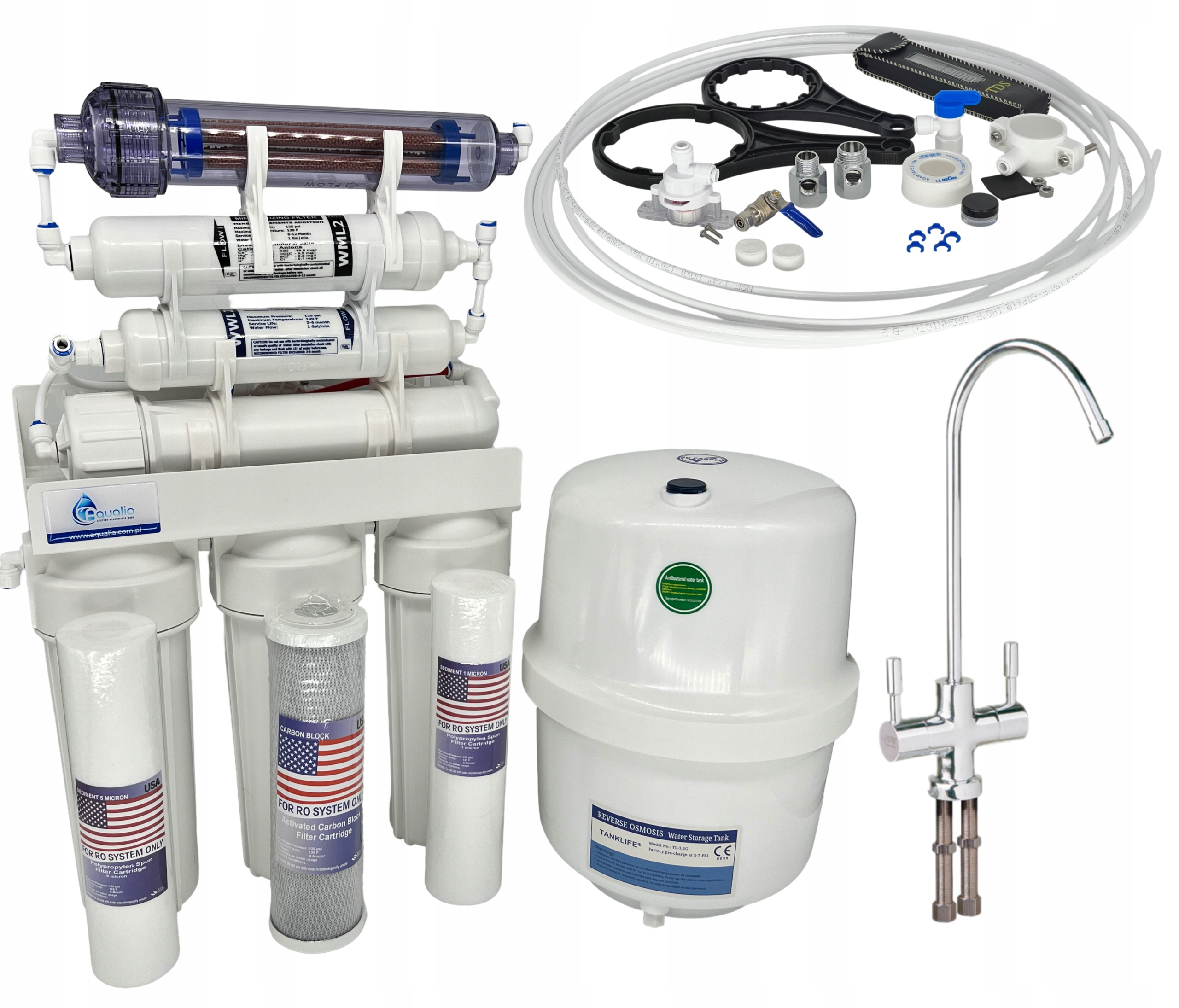 семирівнева, високоефективна водна фільтр з мінералізацією та функцією іонізації води. Система використовує найбільш точний метод фільтрації води - інвертований осмос, який гарантує глибоке очищення та кристалічну питну воду, видаляючи 98/99,9% забруднення.
