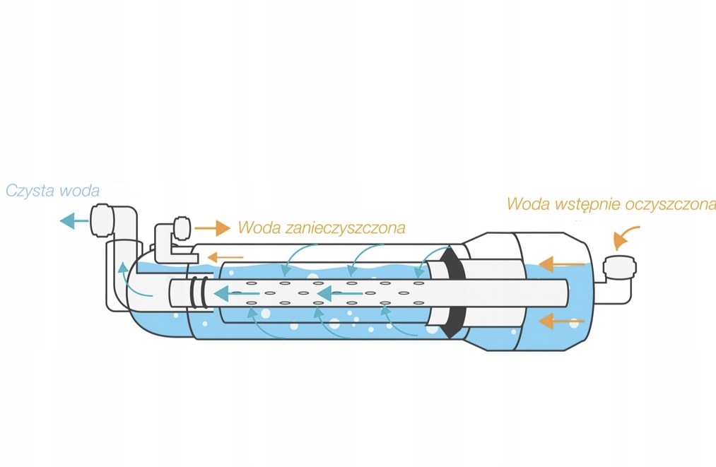 натхненний Осмозе, тобто процесом, що відбувається в природі: у рослин, тварин і людей, що робить його біонічною технологією. Процес передбачає проникнення води через напівпроникну мембрану, в області з нижчою концентрацією розчинених речовин, до області, де ця концентрація вища - з метою рівня. Вода, що протікає при тиску через наступні пори шарів фільтра мембрани, зменшує концентрацію забруднення, що міститься в ньому, навіть у 99,9%.