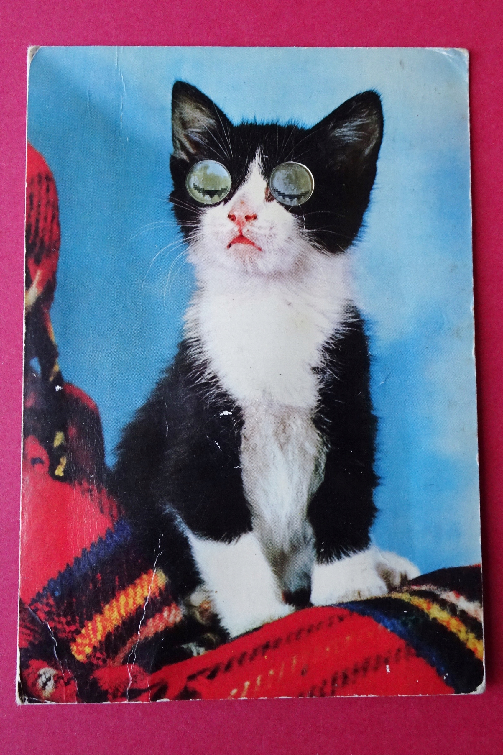 Кот кліпає очима та видає пискливий звук, коли ви натискаєте листівку.