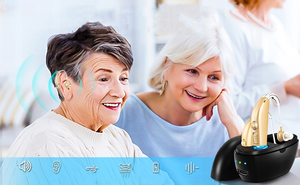 【простий у використанні】 перемикач з однією дотиком, очевидною кнопкою перемикання / вимкнення. Просто відрегулюйте ручку гучності в слухових апаратах, і ніжне прокрутка зміцнить звук. Дуже підходить для людей похилого віку.