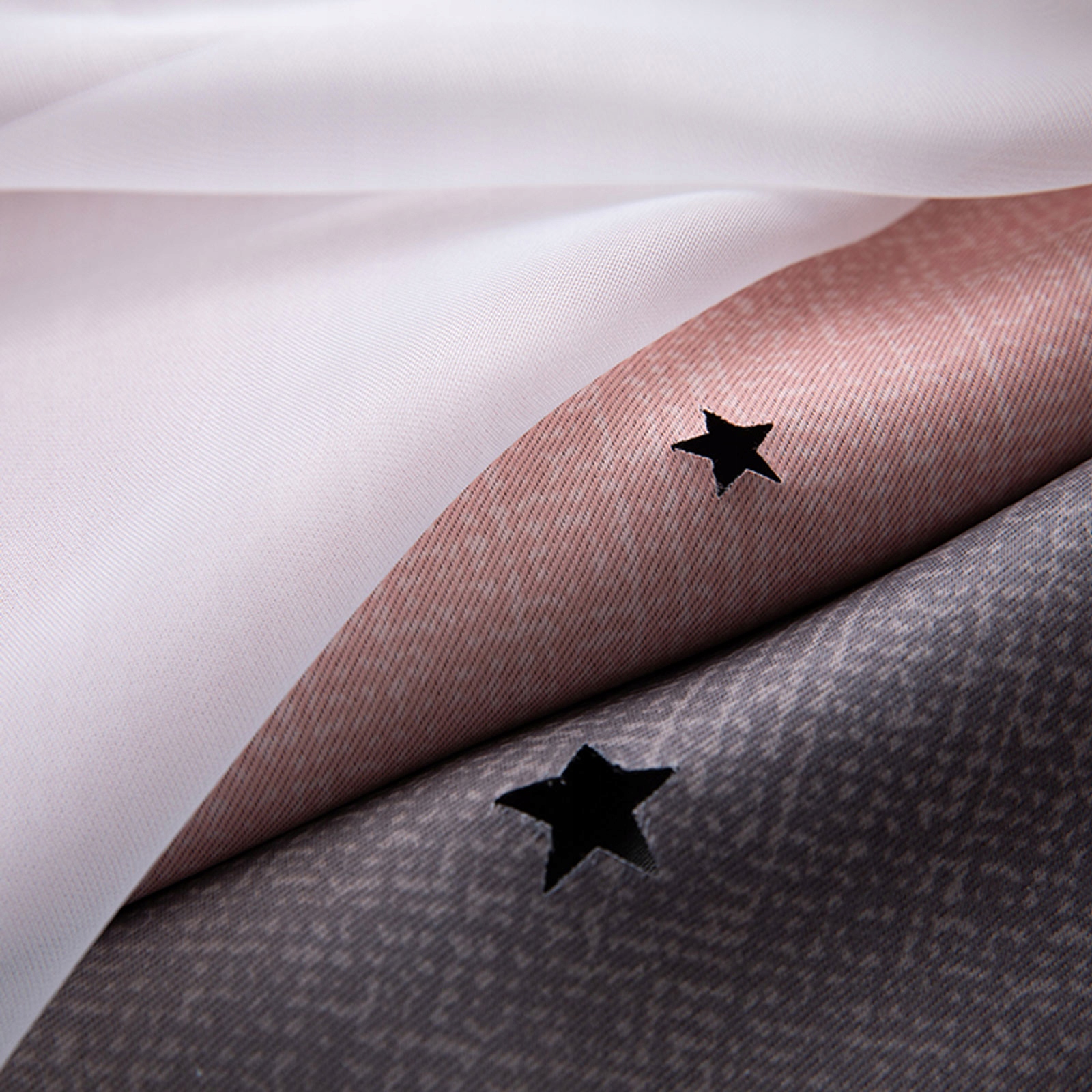 випадковим чином розповсюджені порожні зірки вирізані лазером у тканині. Коли світить сонячне світло чи інше світло, з’являються зірки, наповнюючи кімнату романтичною кімнатою та чарівною атмосферою.