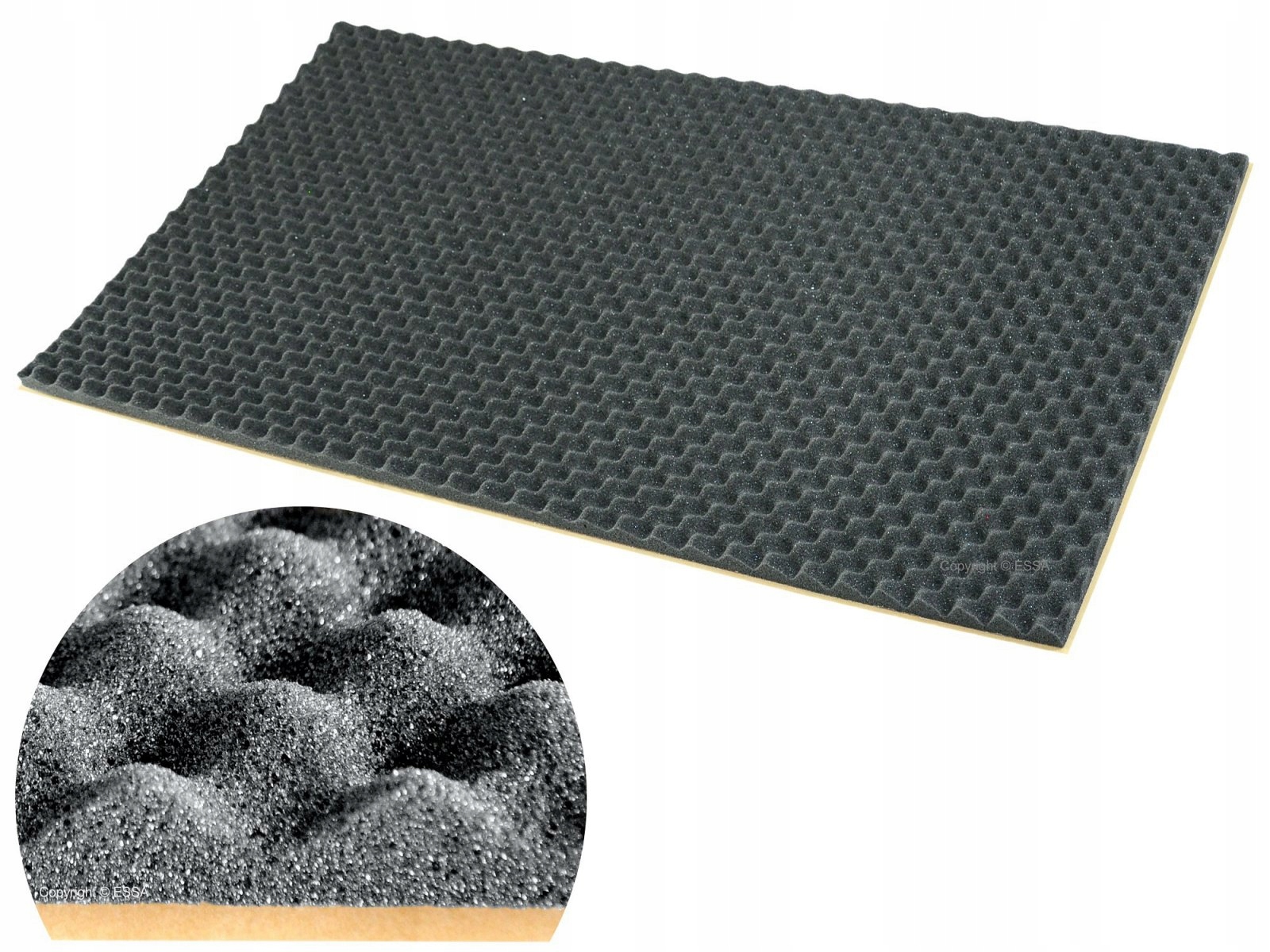 - самоклеючий, дуже гнучкий і дуже м’який спінений килимок з дуже високою здатністю поглинати звук на середніх і високих частотах смуга, завдяки структурі з напіввідкритими та частково закритими осередками, зменшує шум також у нижньому діапазоні акустичного діапазону (починає працювати приблизно з 100 Гц), вона також може діяти як теплоізоляція в сухих місцях всередині кабіни (напр. на даху за обшивкою стелі)