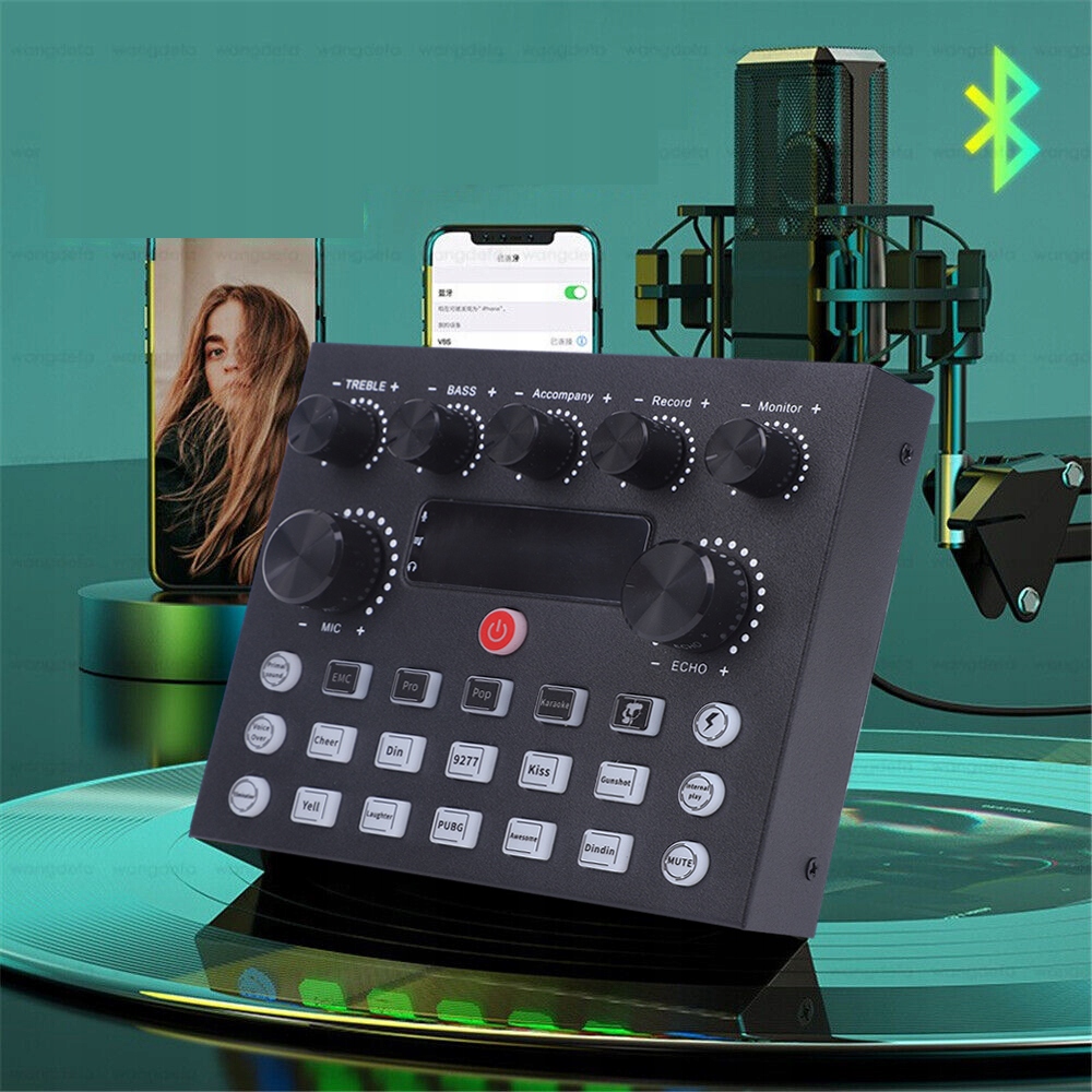 ☑️Операція однією клавішею:Звукова карта має різні режими, як-от професійний режим, популярний режим, одна клавіша крику, одна клавіша електронної музики тощо. Ви можете керувати різними сценаріями. ☑️Бездротовий супровід:Індикатор Bluetooth блимає, коли ваш телефон буде підключено, а індикатор буде горіти завжди після успішного підключення.