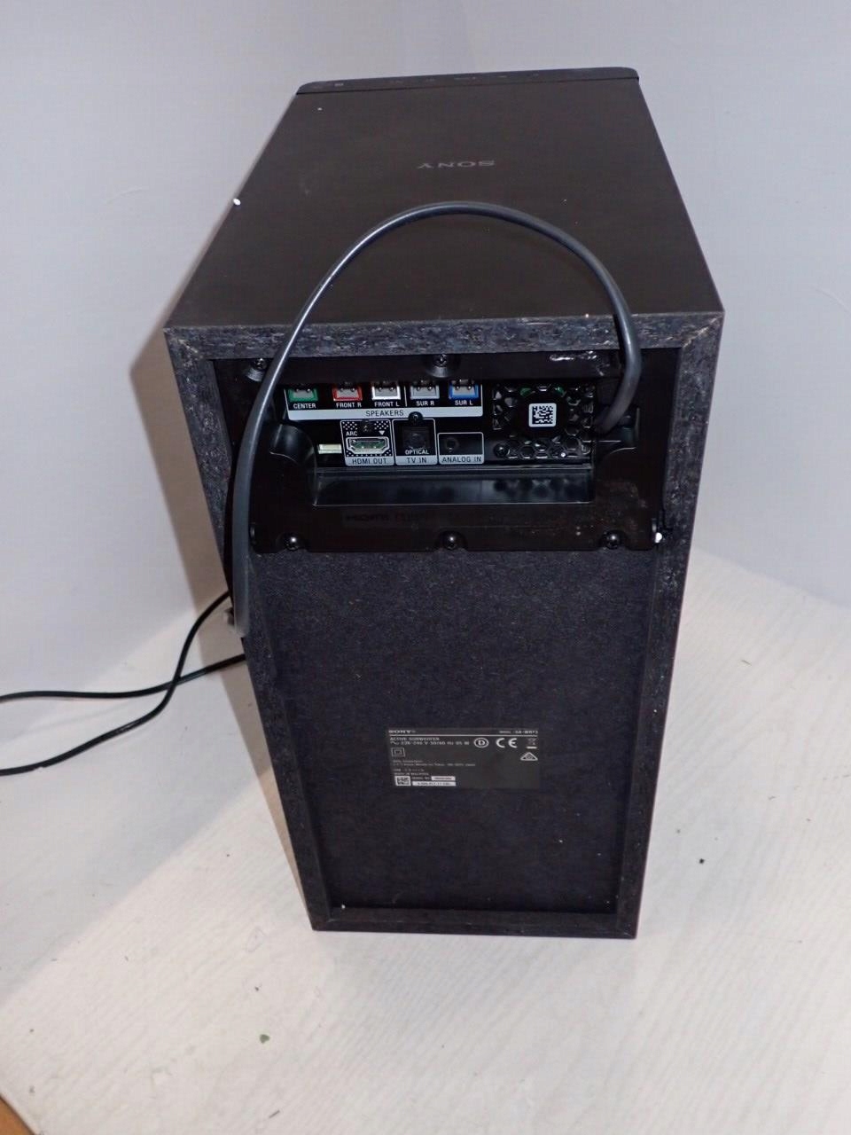 Стан товару: б/у, пошкоджений товар, зламаний корпус сабвуфера, не працюють верхні кнопки на пульті