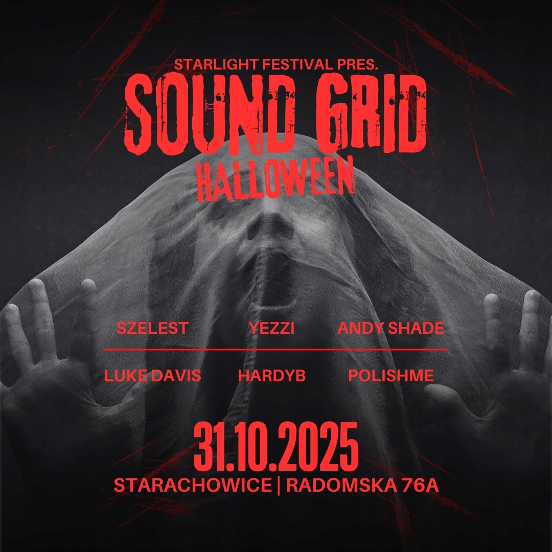 Третє видання події, підписане фестивалю Starlight, доставить вас у темний світ підпільного будинку та техно. Квитки на звукову сітку Vol. 3 - Хеллоуїн видання зараз у продажу! Звукова сітка Vol. 3 лінійка Це музичне свято відведе вас далеко від комерційних схем. Це подія для людей, які шукають справжні емоції, суворий клімат та унікальні набори - очікуйте темних, атмосферних пейзажів та інтенсивних вогнів, які познайомить вас із Хеллоуїном Транс. Лінійка: Польський Yezz Хардіб Шелест Енді Тінь Люк Девіс Цього разу ми поєднуємо електронну музику з унікальним мистецтвом - прем'єрною, мультимедійною презентацією творів Марцина Бондаровича, визнаного ілюстратора, переможця численних національних та міжнародних нагород, включаючи найважливішу європейську нагороду європейської газети за найкращу обкладинку в міжнародній пресі (2023). Простір звукової сітки буде завершено 88 визнаними та нагородженими творами, тема яких не є випадковою -їх темний характер, розташований у продуманій послідовності, створює антивоєнне повідомлення, надзвичайно поточне в ці важкі та значні часи Крім того, ми створили темні прикраси, натхненні кінотеатром жахів, який збагатить наш котел новим, інтенсивним досвідом - сповненим дивовижних деталей та візуалізацій. Це справжні установки чи просто гра вашої уяви? Ви дізнаєтесь на місці ...