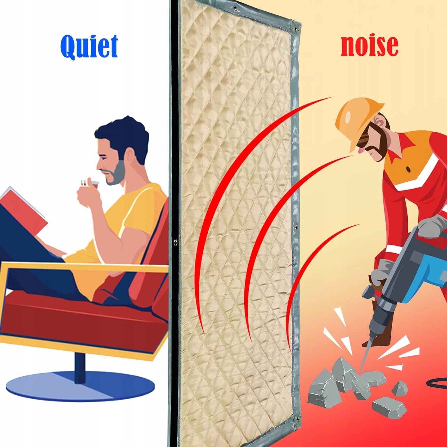 промислова тимчасова звукоізоляційна огорожа може бути швидко та економічно встановлена. У краю ковдри є отвори та кріплення на липучках, які можна повісити мотузкою або гачком. Кожна ковдра може бути підключена до кріплення на липучках.