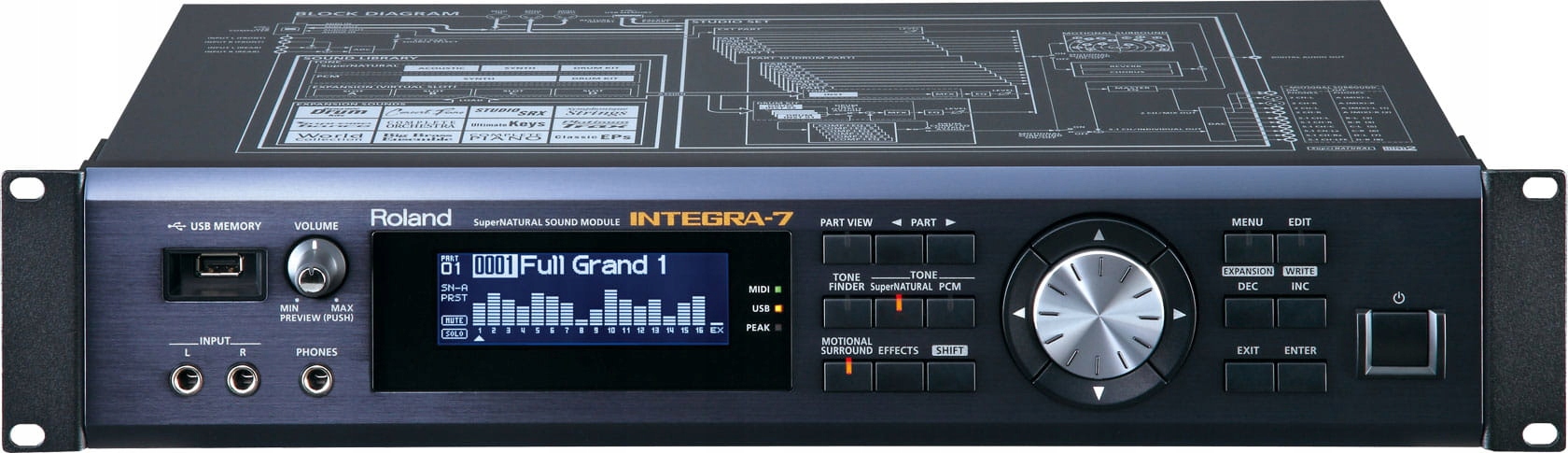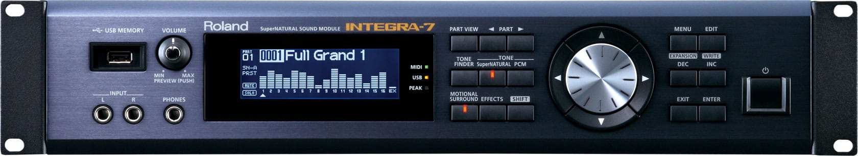 Розробивши звуки SuperNATURAL і технологію моделювання поведінки, компанія Roland стерла межу між акустичними та електронними інструментами. Заснований на цих технологіях, новий модуль INTEGRA-7 швидко надає музикантам багате джерело найновіших звуків SuperNATURAL через повністю обладнаний модуль із 16 частин. Багатство цієї потужної стійки складається з колекції «найкращих хітів» - звуків із флагманських клавішних і модулів V-Drums Roland, а також бажаних карток SRX. Він також представляє новий тип синтезу під назвою Motional Surround, механізм реверберації з 17 частин, який дозволяє графічно контролювати відстань і положення кожної частини в звуковому полі на 360 градусів. Завдяки потужності INTEGRA-7 ви можете створювати дивовижно реалістичні та детальні оркестрові аранжування, об’ємне звучання та багато іншого.