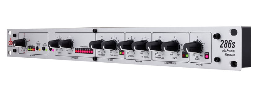 DBX 286S, поєднання мікрофонного попереднього підсилювача та п’яти інструментів, можна вільно використовувати, але це, безперечно, дозволяє для обходу мікшера при підключенні попереднього підсилювача з ефектами. Кришталево чисте звучання 286S має все необхідне: широкий діапазон посилення, перемикання фантомного живлення 48 В, фільтр високих частот >80 Гц. Крім того, м’який компресор OverEasy забезпечує плавний голос або класичний рок-вокал «прямо в обличчя». 286A також є де-ессером, енхансером, експандером і гейтом. DBX також оснастила це обладнання функціями корекції низьких частот.
