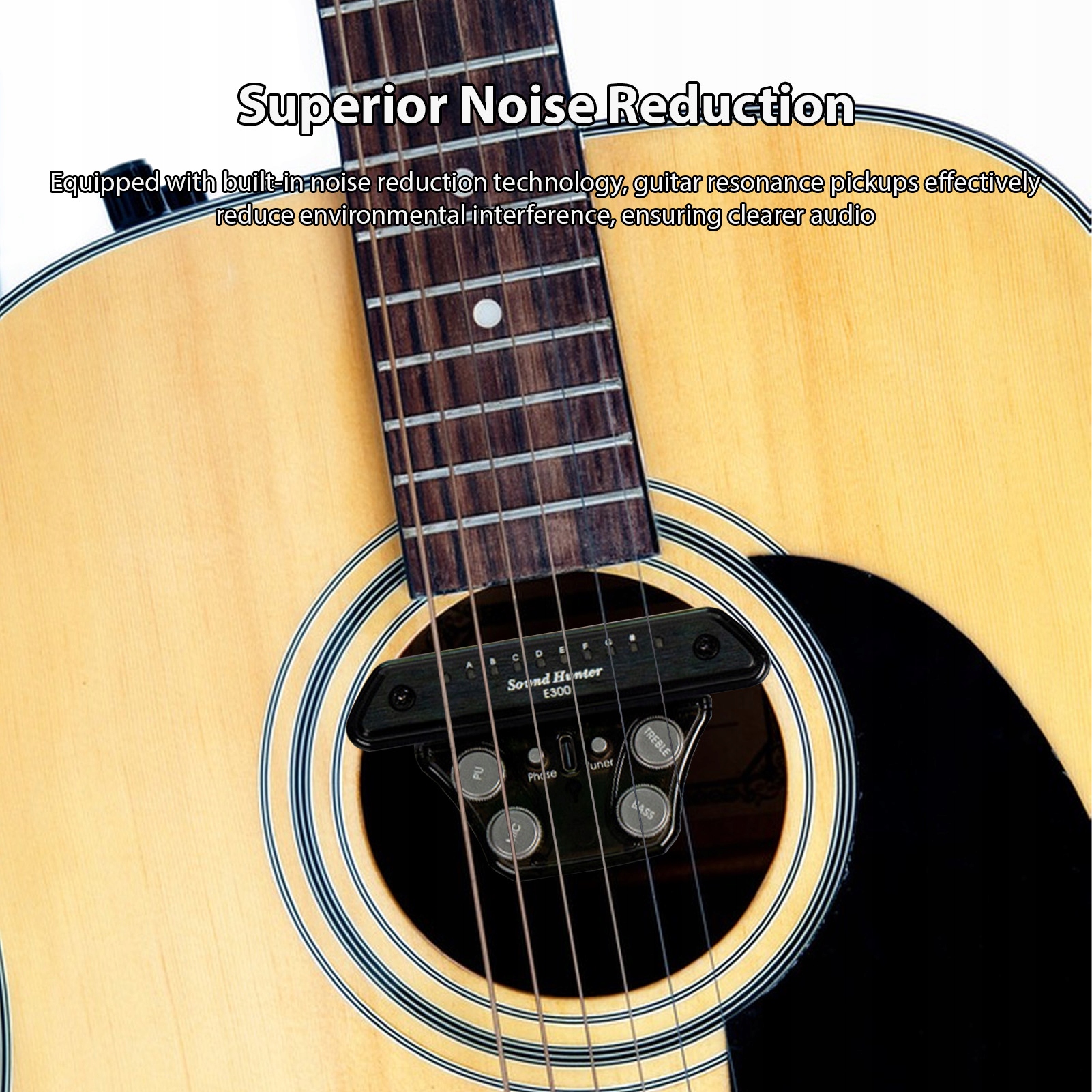 2. Покращене шумозаглушення: оснащені вбудованою технологією шумозаглушення, наші гітарні резонансні звукознімачі ефективно зменшують навколишній шум для більш чистого звуку та чистішого музичного досвіду. Ви можете насолоджуватися первозданною якістю звуку без перешкод з боку навколишніх звуків.