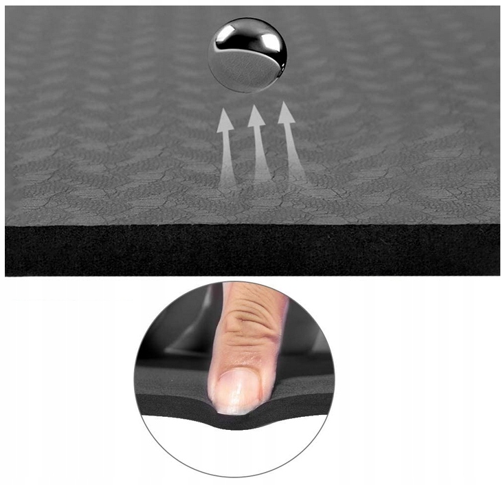 Килимок виготовлений із матеріалу TPE найвищої якості, що характеризується гнучкістюі високою довговічністю.