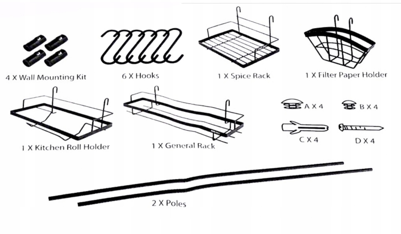 ✅ Рейка оснащена універсальними гачками для підвішування будь-яких аксесуарів, а також має полички для паперових рушників або іншого посуду, який нам потрібно мати під рукою.