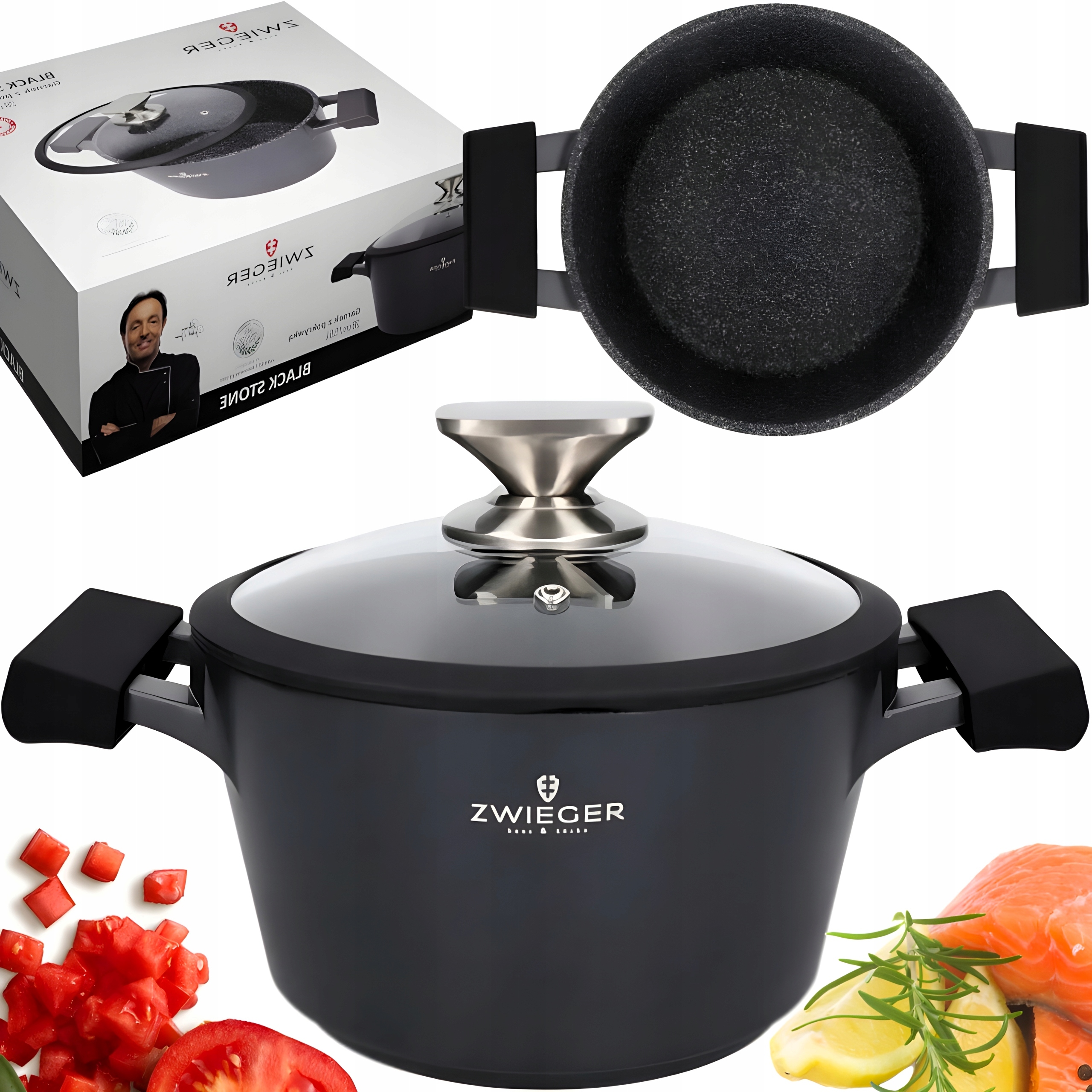 Zwider Pot з кришкою алюмінієвого антипригарного індукції чорний камінь 28 см 5,5 л