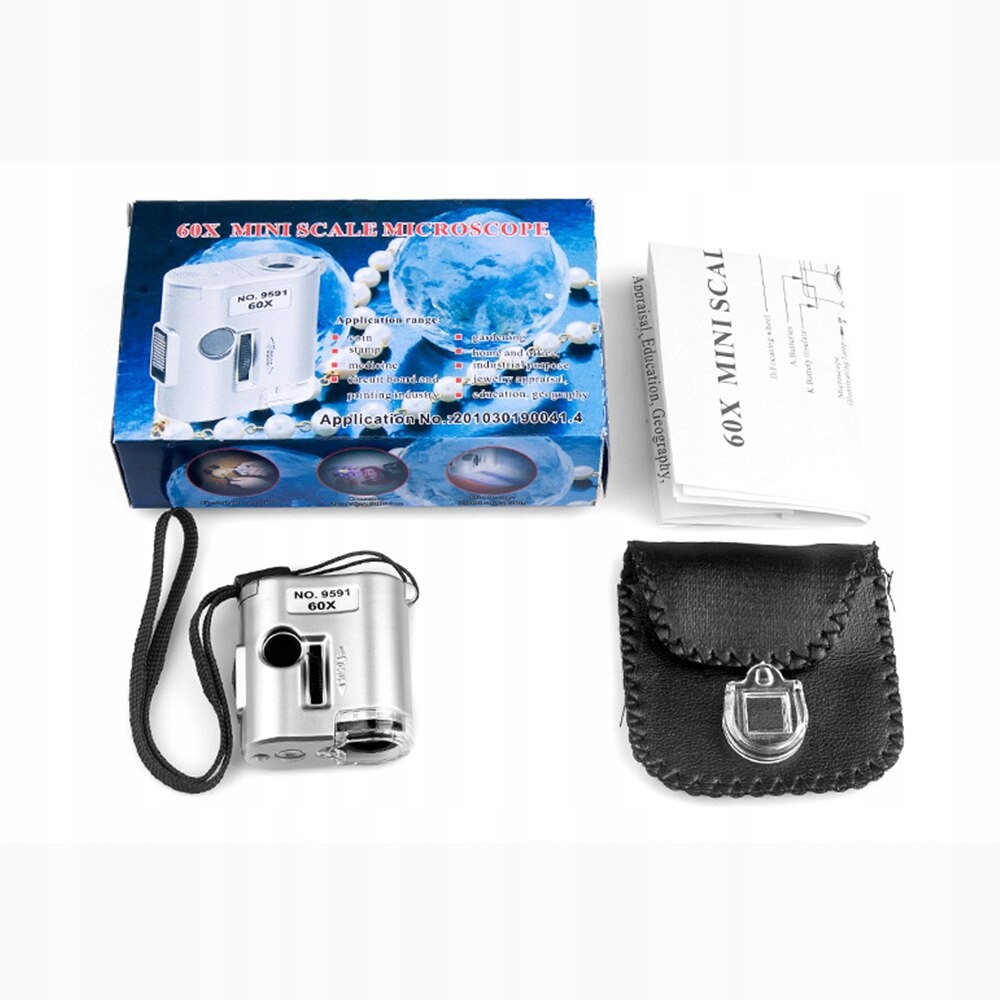 Кишеньковий мікроскоп, світіння ювелірних виробів із збільшенням 60x