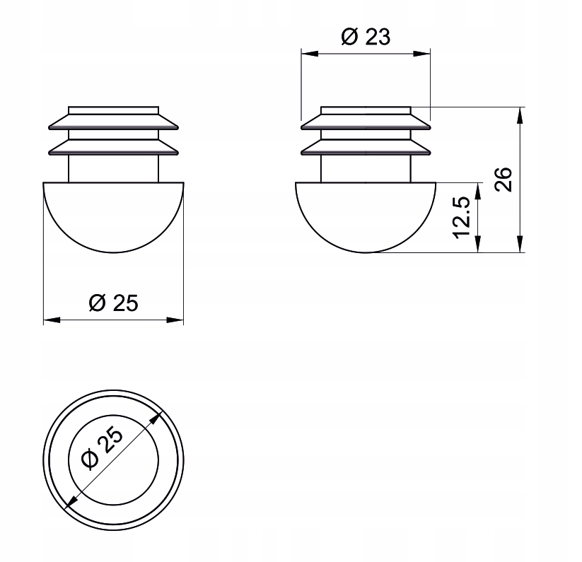 Напівкругла заглушка для труби FI 25 мм - R-17A